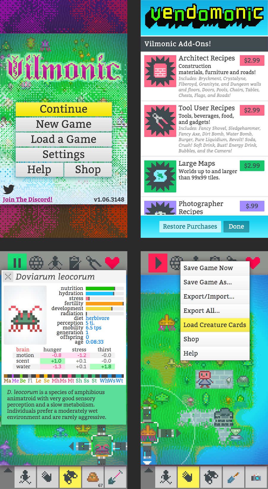 The interface design of Vilmonic is going for a warm, fun and modern take on a classic windowing UI. Vilmonic easily transitions between desktop, web and mobile platforms using a single codebase and responsive design. This includes custom abstractions to handle both mouse and touch input.